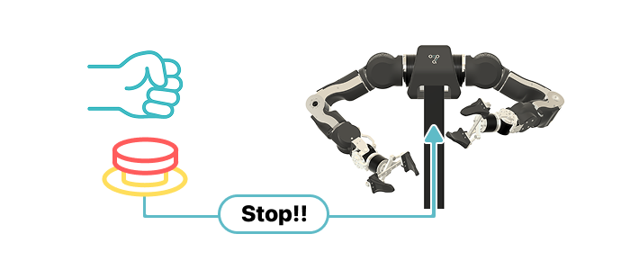 Familiarize yourself with the location and operation of the emergency stop device so that you can activate it immediately if something abnormal occurs. The emergency stop switch should be installed in a safe position at a sufficient distance from OpenArm.