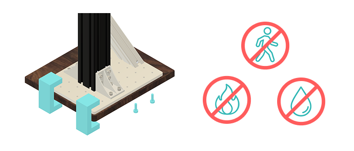 When installing OpenArm, securely fasten it with screws or clamps to a flat and stable surface. Avoid placing it near fragile objects, flammable materials, or sources of moisture. Additionally, make sure there are no walkways or passages nearby where people frequently pass.