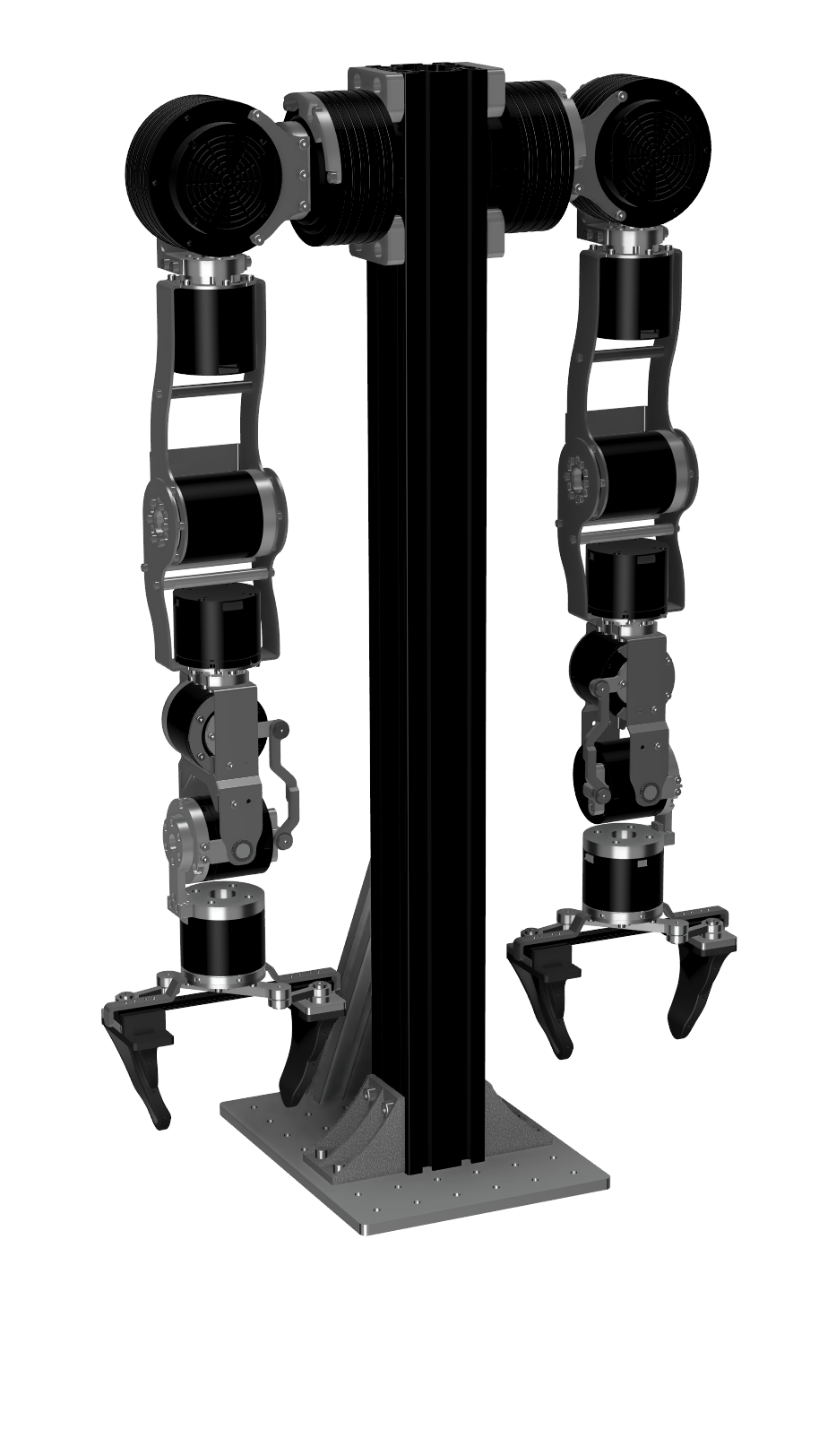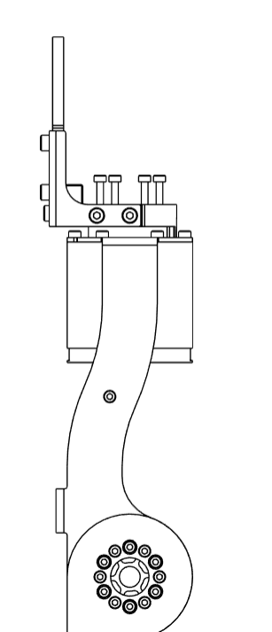 1. Finally, mount the arms on the pedestal using 4 M6x12 bolts in J1_A. Make sure you have already inserted T-slot nuts inside the aluminium extrusion. Align the top of J1_A to the top of the aluminium extrusion.