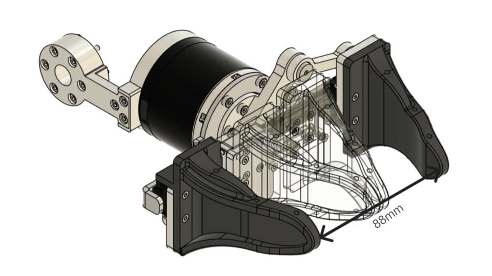 The gripper in the fully open closed position (at 60° clockwise rotation).